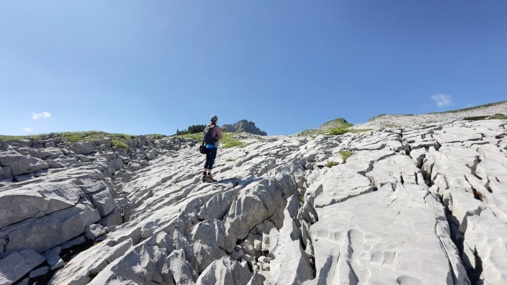 Mit Christian Kohler (Abenteuer Vertikal) erkundete sie die Karstlandschaft des Gottesackers, die durch Kalksteinverwitterung geprägt ist und seit Jahrhunderten Gegenstand intensiver Forschung ist. Im Gespräch mit Karl Keßler erfuhr sie über die vielfältigen naturkundlichen Forschungsinitiativen im Kleinwalsertal, beispielsweise über das Mesolikthikum, hydrologische Forschungen oder über die Moore.